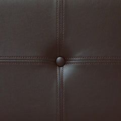 Details Made with sturdy solid wood frame, Gently distressed and burnished dark brown finish, Faux leather upholstery, Cushioned seat, Assembly required