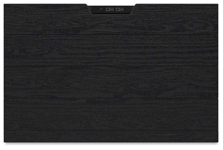 Details B768B5: Includes headboard, footboard and rails, Made with pine solids, veneers and engineered wood substrate, Textured black wood stain with waxy topcoat, Extra wide rails for a bench-like wrap around, Foundation/box spring required, sold separately, Mattress available, sold separately, Assembly required, B768B1: Includes dresser and mirror, Made with pine solids, veneers and engineered wood substrate, Textured black wood stain with waxy topcoat, Hardware-less design, 6 drawers with fully finished interiors, dovetail construction and ball-bearing side glides (top drawers felt lined), Mirror attaches to back of dresser, B768-46: Made with pine solids, veneers and engineered wood substrate, Textured black wood stain with waxy topcoat, Hardware-less design, 5 drawers with fully finished interiors, dovetail construction and ball-bearing side glides (top drawers with felt-lined bottoms), B768-92: Made with pine solids, veneers and engineered wood substrate, Textured black wood stain with waxy topcoat, Hardware-less design, 2 drawers with fully finished interiors, dovetail construction and ball-bearing side glides, 110V power supply with dual USB charging ports, Power cord included; UL Listed,