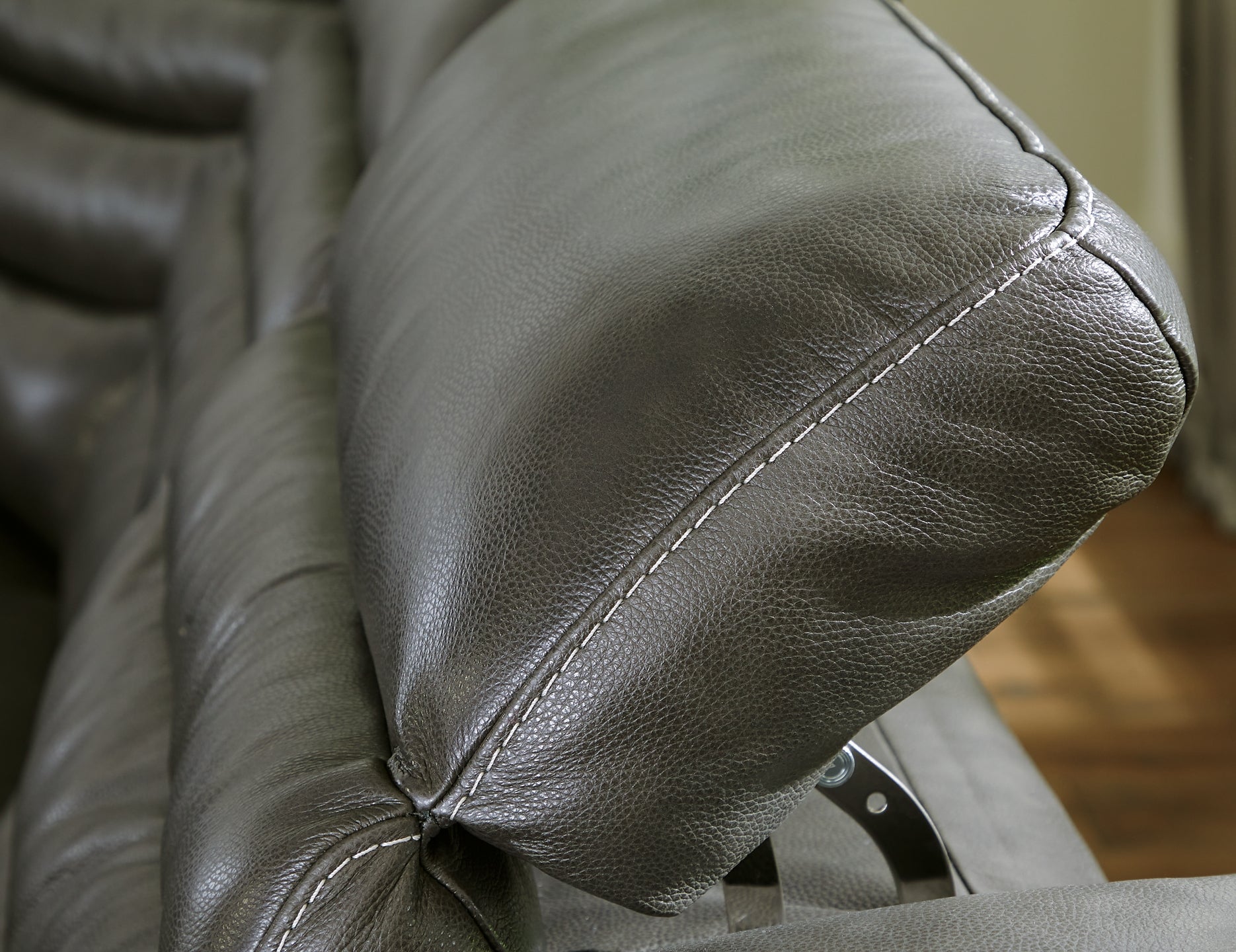 Details Includes 7 pieces: left-arm facing power recliner, power armless recliner, armless chair, wedge, right-arm facing power recliner and 2 consoles with storage, "Left-arm" and "right-arm" describe the position of the arm when you face the piece, One-touch power control with adjustable positions, Easy View™ adjustable headrest and zero-draw USB port, Zero-draw technology only consumes power when the USB receptacle is in use, Corner-blocked frame with metal reinforced seat, Attached cushions, High-quality foam cushions wrapped in poly fiber, 100% top grain leather covers inside areas such as the back, seat and arm cushions; skillfully matched faux leather covers the remaining areas, Due to its natural origin, real leather can show individual characteristics such as healed scars, growth marks, grain variation and shade variation, Natural variations make each hide unique and do not detract from the wearing qualities of leather, Zero wall recliner design requires minimal space between wall and chair back, Console with 2 cup holders and storage, Power cord included; UL Listed