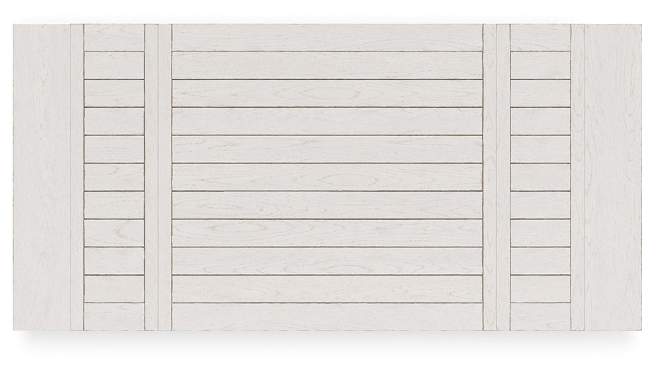 Details D642-32: Made with rubberwood solids, ash veneer and MDF substrates, Antiqued white finish with wood grain texture, Tabletop with planked effect, Two 12” extension leaves, Table extends by pulling both ends and dropping in leaf, Assembly required, D642-124: Made with wood, Antiqued white finish with wood grain texture, Foam cushion with polyester upholstery, Nailhead trim, X-back, Assembly required,