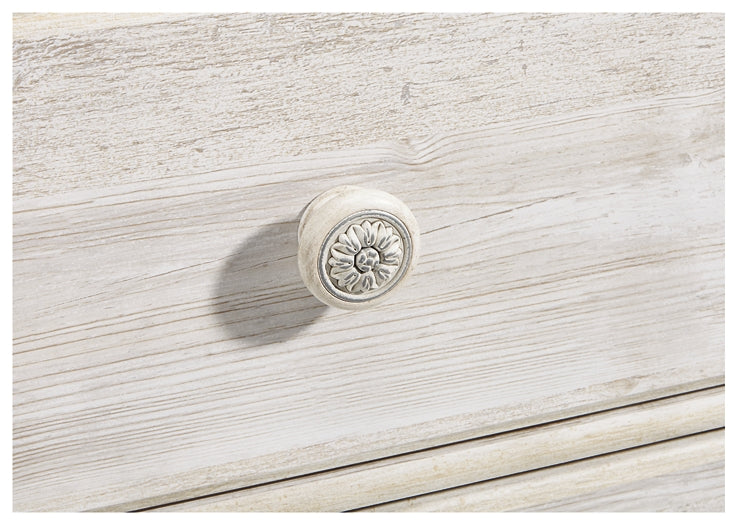 Details B181B10: Includes headboard, footboard and rails, Made of engineered wood (MDF/particleboard) and decorative laminate, Whitewash replicated worn through paint with authentic touch, Headboard with adjustable height, Mattress not included, sold separately, Foundation/box spring required, sold separately, Assembly required, Bed is compatible with an adjustable base, B181B8: Dresser with mirror, Made of engineered wood (MDF/particleboard) and decorative laminate, Whitewash replicated worn through paint with authentic touch, Hardware features a worn-through painted effect, 6 smooth-gliding drawers with faux laminate lining, Mirror attaches to back of dresser, Assembly required, B181-48: Made of engineered wood (MDF/particleboard) and decorative laminate, Whitewash replicated worn through paint with authentic touch, 5 smooth-gliding drawers with faux laminate lining, Slider door revealing open storage with 3 adjustable shelves, Safety is a top priority, clothing storage units are designed to meet the most current standard for stability, ASTM F 2057 (ASTM International), Drawers extend out to accommodate maximum access to drawer interior while maintaining safety, B181-92: Made of engineered wood (MDF/particleboard) and decorative laminate, Whitewash replicated worn through paint with authentic touch, 2 smooth-gliding drawers with faux laminate lining, 2 slim-profile USB charging ports, Power cord included; UL Listed, Minor assembly required,