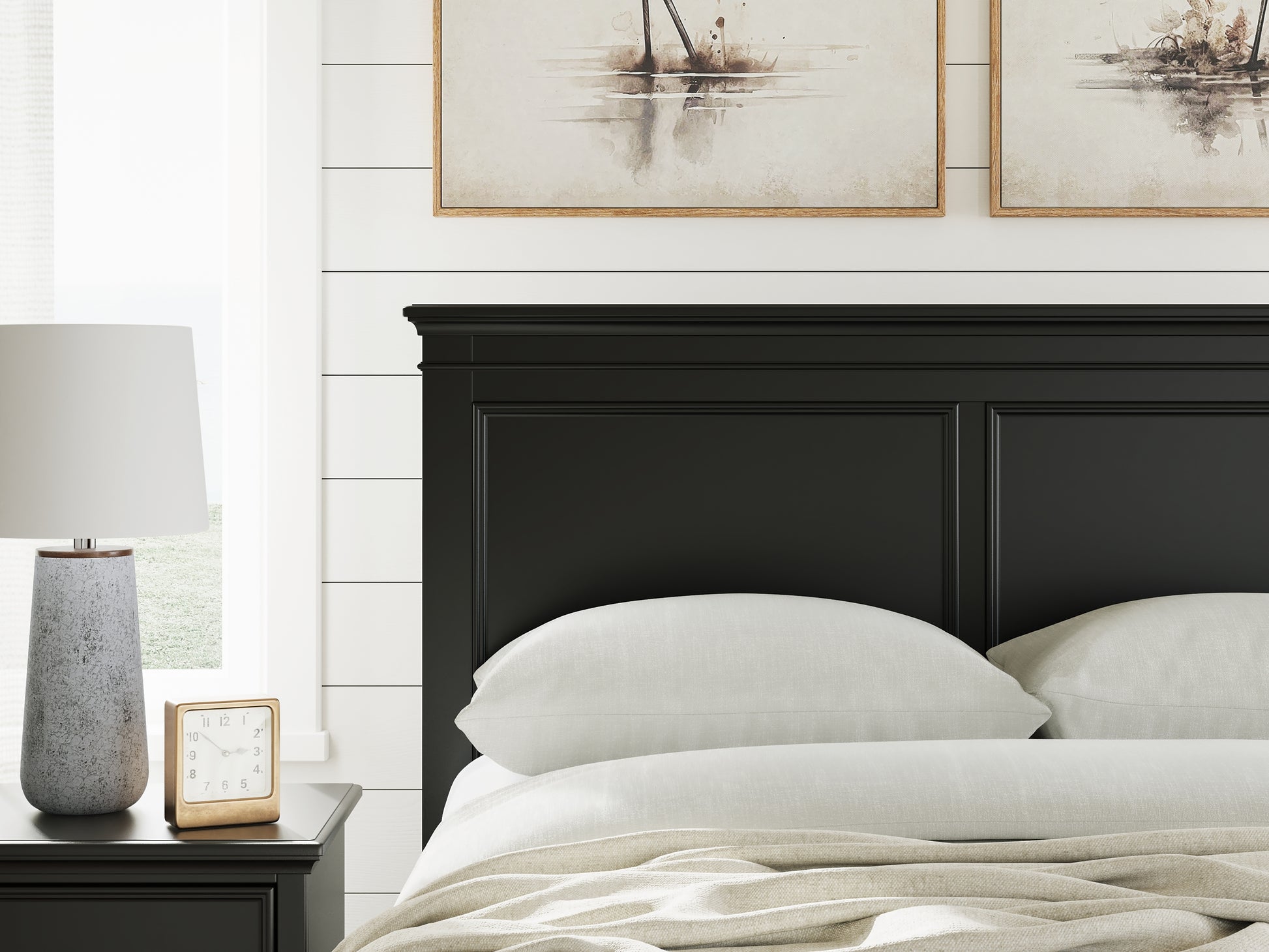 Details B687B22: Includes panel headboard, storage footboard with roll slats and rails , Made with hardwood solids, birch veneer and MDF substrate, Side rails feature laminated solid hardwood slat support rails (or LVL) with glued and screwed blocking for added strength, Black painted finish, Round metal knobs with satin nickel-tone finish, 2 smooth-gliding drawers in footboard, Tapered feet, Bed does not require additional foundation/box spring; accommodates most zero clearance adjustable bases with the addition of a bunkie board, Mattress available, sold separately, Assembly required, B687B1: Includes dresser and mirror, Made with hardwood solids, birch veneer and MDF substrate, Black painted finish, 7 smooth-gliding drawers with dovetail construction and ball-bearing side glides, Round metal drawer knobs with satin nickel-tone finish, Framed drawer fronts, Tapered feet, Mirror attaches to back of dresser, Assembly required,