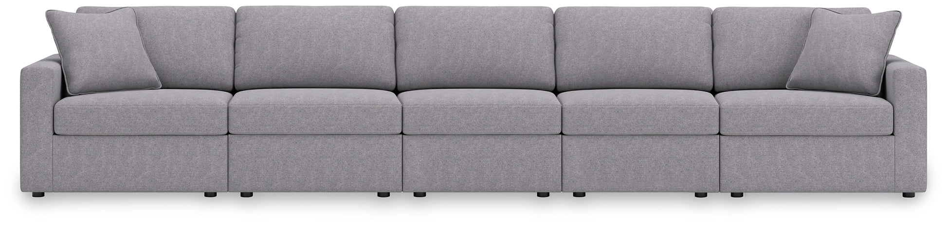 Details Includes 5 modular pieces: left-arm facing corner chair, 3 armless chairs and right-arm facing corner chair, "Left-arm" and "right-arm" describe the position of the arm when you face the piece, Modular pieces can float anywhere; sides are finished (with no connectors), Corner-blocked frame; reversible seat and back cushions; high-quality foam cushions wrapped in poly fiber, Throw pillows included; soft polyfill, Polyester upholstery, Next-Gen Nuvella™ is a family-friendly fabric that is soft, easy to clean, stain-resistant and durable, Easy-to-remove zippered covers for machine washing, Clean fabric with mild soap and water, let air dry; for stubborn stains, use a solution of 4 oz. bleach to 28 oz. water, Non-skid legs, Platform foundation system resists sagging 3x better than spring system after 20,000 testing cycles by providing more even support, Smooth platform foundation maintains tight, wrinkle-free look without dips or sags that can occur over time with sinuous spring foundations
