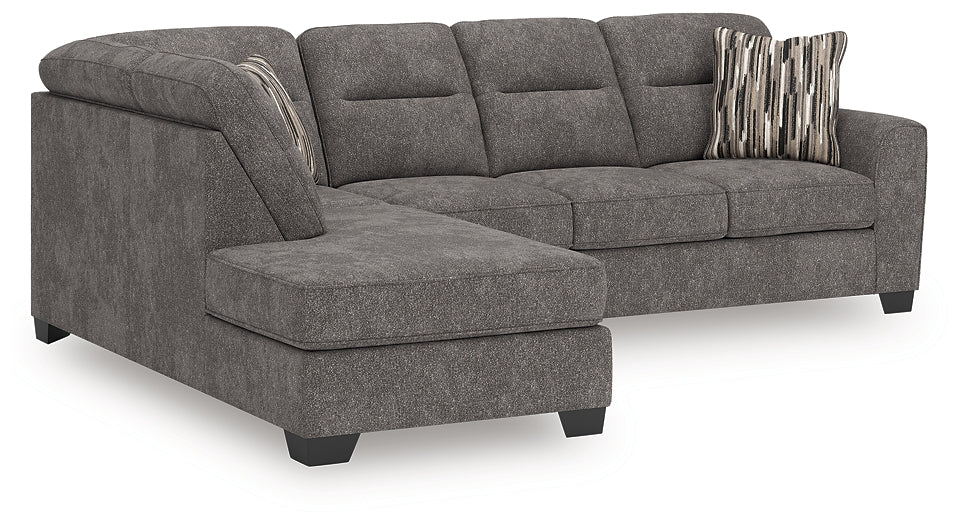 Details Includes 2 pieces: left-arm facing corner chaise and right-arm facing sofa, “Left-arm” and “right arm” describe the position of the arm when you face the piece, Corner-blocked frame, Attached back and loose seat cushions, High-quality foam cushions wrapped in poly fiber, Accent pillows included, Pillows with soft polyfill, Polyester upholstery, Exposed feet with faux wood finish, Platform foundation system resists sagging 3x better than spring system after 20,000 testing cycles by providing more even support, Smooth platform foundation maintains tight, wrinkle-free look without dips or sags that can occur over time with sinuous spring foundations