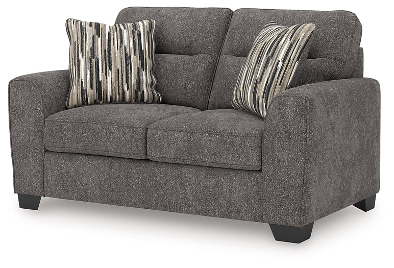 Strike a balance between the indulgent comfort you crave and the contemporary aesthetic you long for. The fabulously soft, mocha-colored upholstery of this loveseat takes neutrals to new heights. Plus there's plenty of room to spread out and relax solo or with your bestie. Geometric-patterned accent pillows perfect the richly on-trend aesthetic.