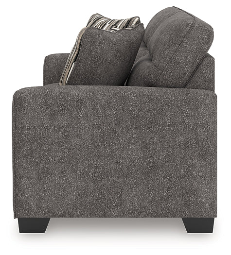 Details Corner-blocked frame, Attached back and loose seat cushions, High-quality foam cushions wrapped in poly fiber, Accent pillows included, Pillows with soft polyfill, Polyester upholstery, Exposed feet with faux wood finish, Platform foundation system resists sagging 3x better than spring system after 20,000 testing cycles by providing more even support, Smooth platform foundation maintains tight, wrinkle-free look without dips or sags that can occur over time with sinuous spring foundations